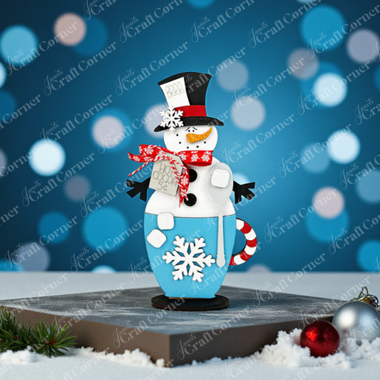 Snowman Hot Cocoa Mug Shelf Sitter - DIY seasonal home decor craft kit - Set of 1
