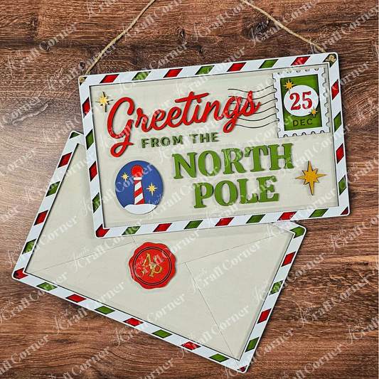 Greetings North Pole Door Hanger - DIY seasonal home decor craft kit - set of 1