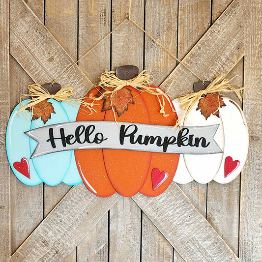 Hello Pumpkin Door Hanger - DIY seasonal home decor craft kit - Set of 1