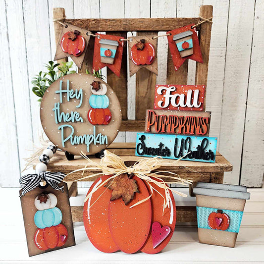Hello Pumpkin Decor Set - DIY seasonal home decor craft kit - 1 set of 6 pieces
