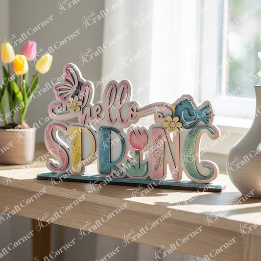 Hello Spring Word Art Standing Shelf Sitter - DIY Craft Kit - Set of 1